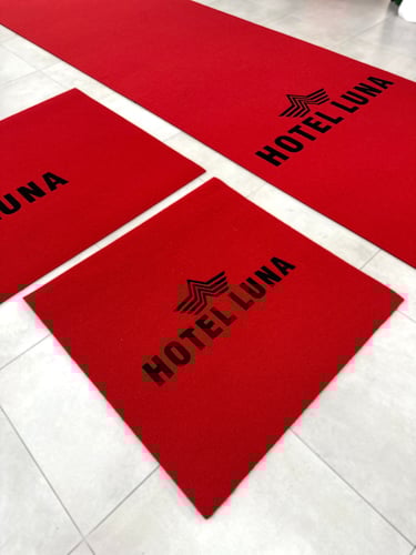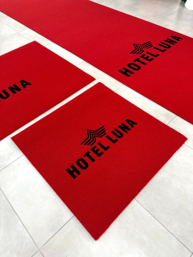 Custom logo carpets tailored for your business space.